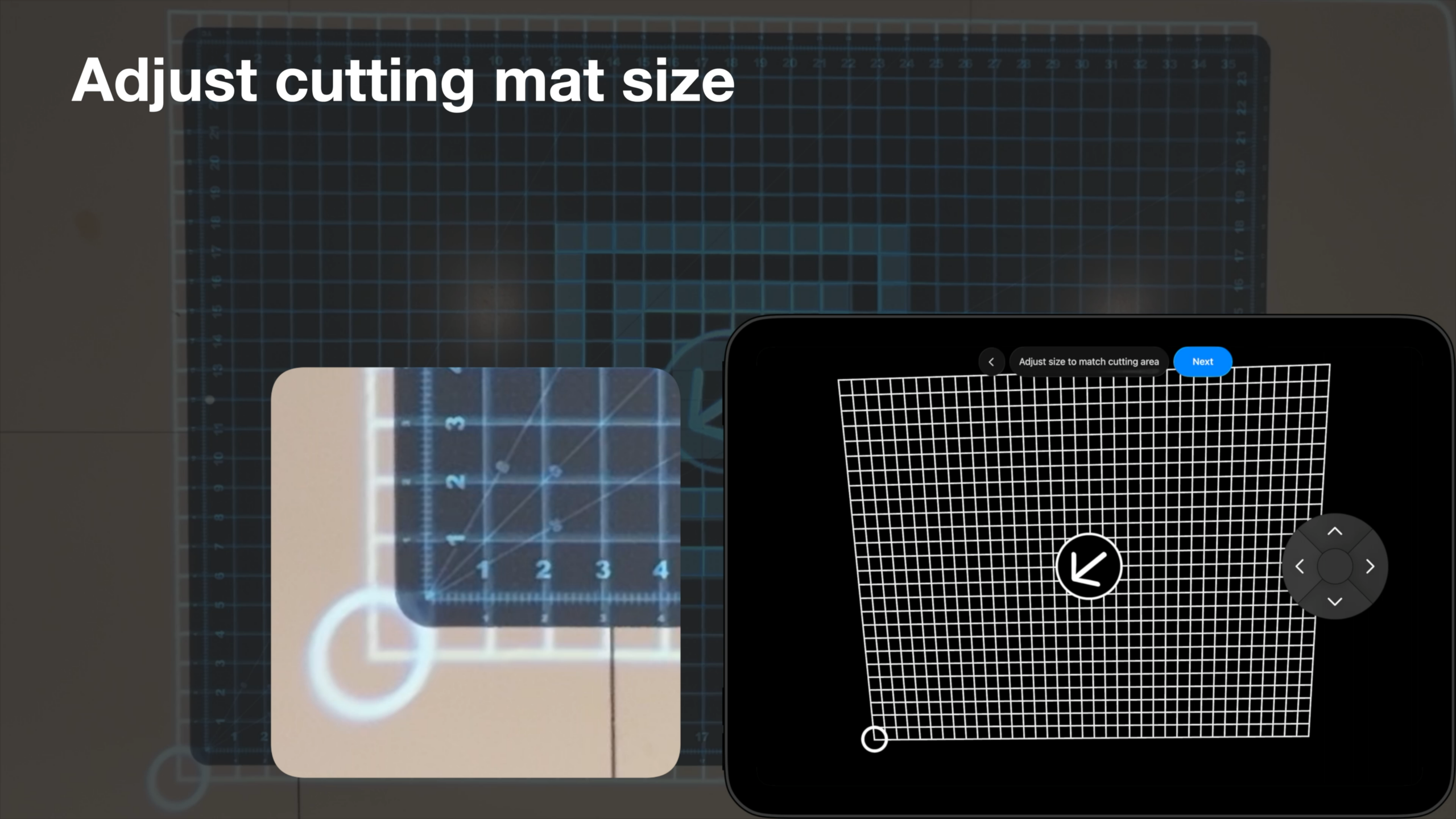 After defining the cutting mat size, it’s time to bring calibration to perfection. Select the circle on one of the corners to bring up the precise adjustment menu, then fine tune its position to the edge of your calibration area; repeat for all four corners .