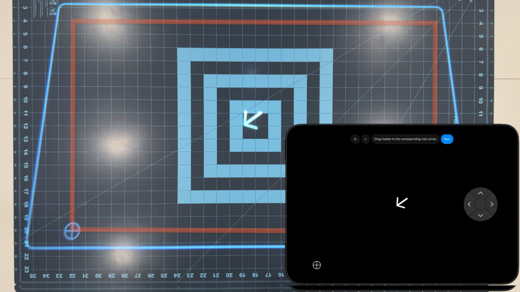 You want to make sure the spinning icon is near the center of the mat. This maximizes your projection area. If you find the area is too small, you can move the projector further away from the cutting mat to help increase the projection size.